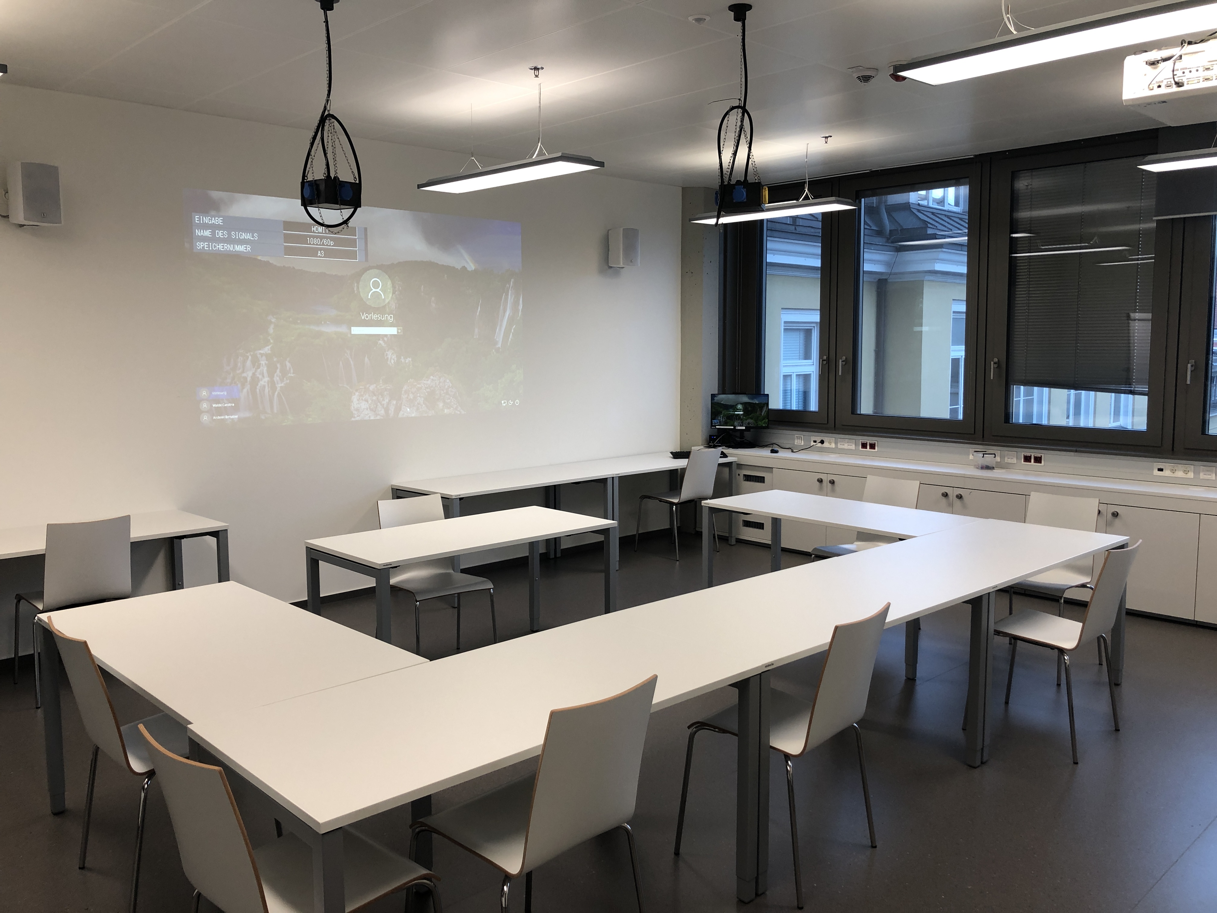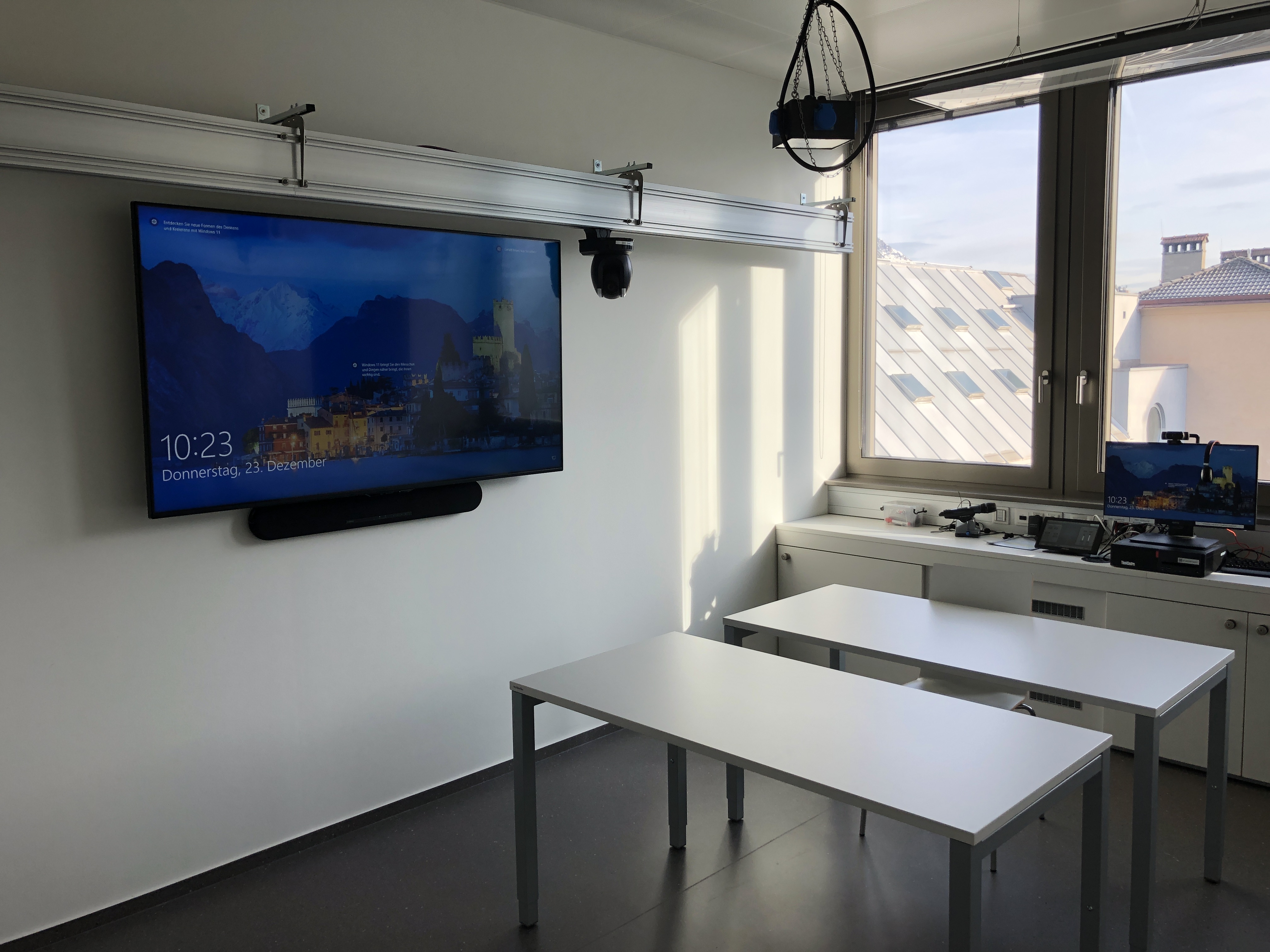 - 1 Monitor und Soundbar oder 1 Projektor mit Lautsprecher